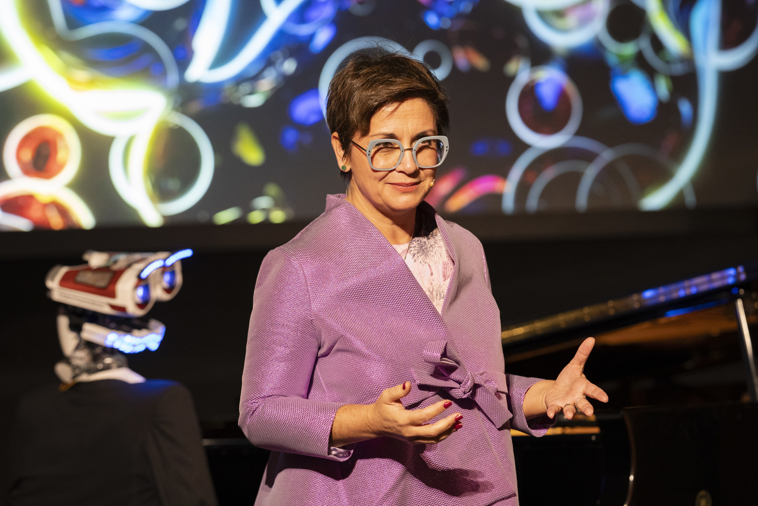 During the event, our CEO Francesca Gabrielli highlighted our innovative research and development of hybrid solutions, never forgetting the importance of the human touch. Her words were complemented by the captivating performance of pianist Prosseda and his intriguing Teotronico robot. Playing iconic pieces such as Chopin and the Turkish March, their musical interlude sparked a profound reflection on the intersection of AI and human sensibility, technology and soul.